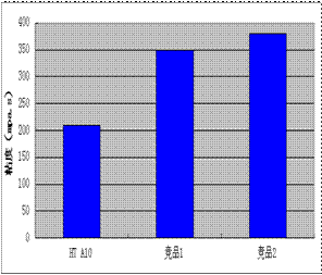 使用競品1和2制備的酞菁藍色漿4 星期后出現(xiàn)沉淀,而HT A10制備的色漿4 星期后仍沒有沉淀。HT A10制備的色漿冷熱循環(huán)后的粒徑變化為5 nm,競品1和2制備的色漿粒徑變化分別為11 nm和9 nm。色漿熱存放實驗和冷熱循環(huán)實驗證明HT A10對酞菁藍穩(wěn)定作用優(yōu)于競品1和2。